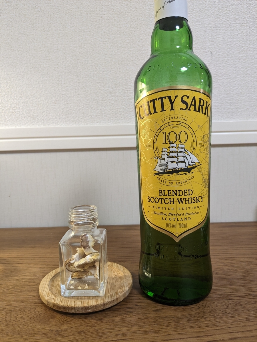 今回使用するウイスキーは毎度おなじみカティーサークです。ウイスキーは着色されているケースが多いですが、本銘柄は着色されていないので、漬ける事による変化が分かりやすい為です。